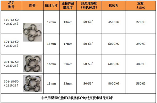 保養鏈耐磨性好,抗疲勞性強,根據使用條件壽命達3000-8000小時。拆裝方便,省時省力,產品規格齊全,可與進口裝載機所匹配,輪胎保護鏈,采用高科技耐磨材料制成其結構新穎緊湊,性能穩定,主要適用于礦山作業的裝載機,其輪胎磨損快,使用壽命短,輪胎價格昂貴,使用成本高,將本產品嚴密的包裹在裝載機的輪胎上,可以有效的保護裝載機的輪胎,不被尖銳的石塊劃傷刺破,延長了輪胎的使用壽命,使用一條輪胎保護鏈,能節省十條輪胎以上的費用還能提高裝載機的工作效率和安全是礦山作業的必備品。