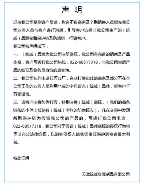 輪胎保護(hù)鏈?zhǔn)遣捎脟鴥?nèi)外先進(jìn)生產(chǎn)工藝,利用優(yōu)質(zhì)合金鋼材料,經(jīng)精密鑄造,高強(qiáng)度全自動(dòng)閃光對(duì)焊,編結(jié)構(gòu)合理,利用特殊焊接工藝焊接而成的一種輪胎保護(hù)設(shè)備。